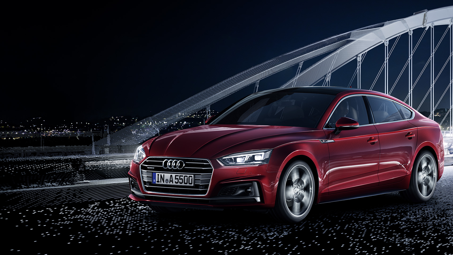 Chiselled lines, an assertively low and wide Singleframe grille, and piercing LED headlights give the A5 Sportback a strong road presence. Four frameless doors integrate seamlessly into the coupé-inspired silhouette, making for an elegant and versatile proposition. The large rear hatch with electric operation provides greater accessibility to the spacious luggage compartment.